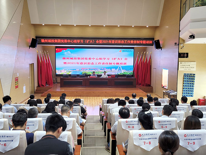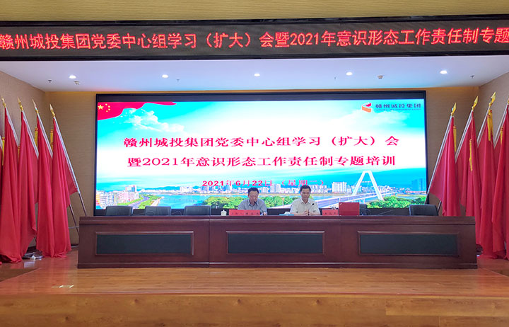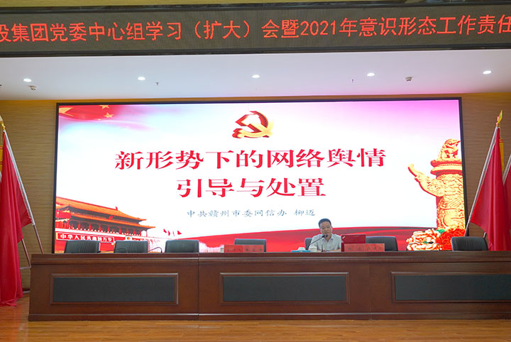 6月22日下午,贛州城投集團舉辦黨委中心組學習(擴大)會暨2021年意識形態(tài)工作責任制專題培訓。市委網信辦副主任柳邁應邀授課,集團黨委副書記黃家偉主持并講話,集團全體高管出席,各黨支部(黨總支)書記及支委成員、支部宣傳干事,各部門、子公司負責人及信息員等聆聽學習。