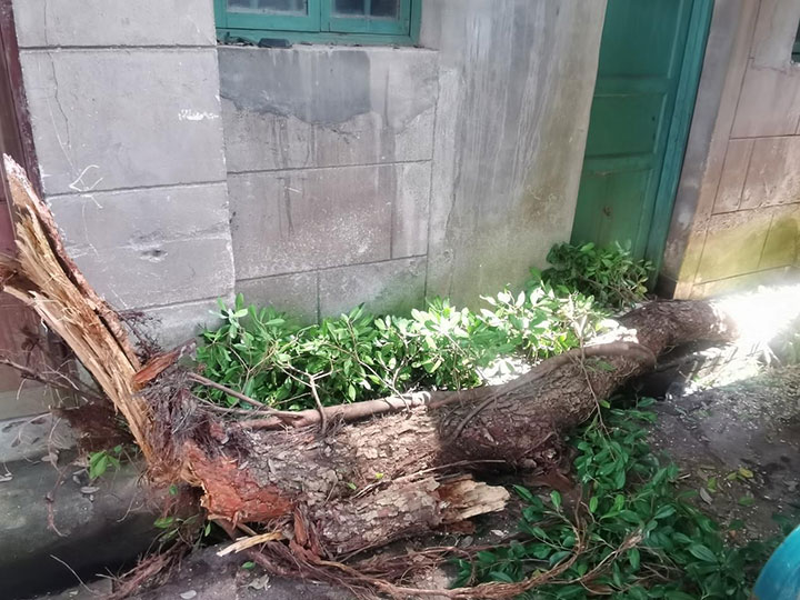 今年5月,我市大部分地區(qū)交替出現(xiàn)大風(fēng)、雷雨、暴雨等天氣,降雨量大且持續(xù)時間長。5月18日,一場雷雨過后,贛州市機(jī)關(guān)事務(wù)管理中心轄區(qū)老市委大院內(nèi),一顆200多年的古榕樹樹枝斷裂,懸掛于院內(nèi)一屋頂之上。院內(nèi)居民憂心忡忡,擔(dān)心這顆“定時炸彈”,隨時都可能掉下,砸毀房屋,危及院內(nèi)居民的人身安全。