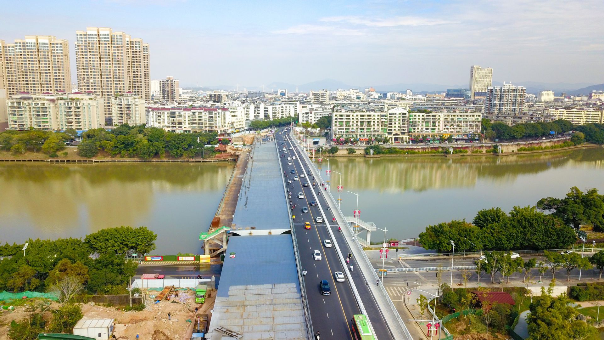 項目建設(shè)內(nèi)容包括拆除既有老橋,在老橋原位新建一幅18米寬橋梁;北岸東側(cè)新建一處地下車庫;西側(cè)改造現(xiàn)有景觀停車場;長征大道增設(shè)一對連接章江南大道的匝道及相關(guān)配套專業(yè)工程等,總投資額3.7億元,施工合同工期為2年,計劃于2022年6月底完工。