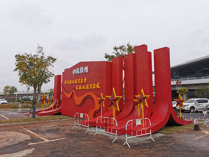 高鐵建投公司承接了設(shè)計贛州黃金機場、贛州西站、贛州火車站文化藝術(shù)造型、市中心城區(qū)快速路燈桿旗等氛圍營造任務(wù)。此次氛圍營造項目工期緊、任務(wù)重,高鐵建投公司克服了設(shè)計難、工序多、制作復(fù)雜、安裝難度大等困難,及時組織施工隊伍進場施工。
