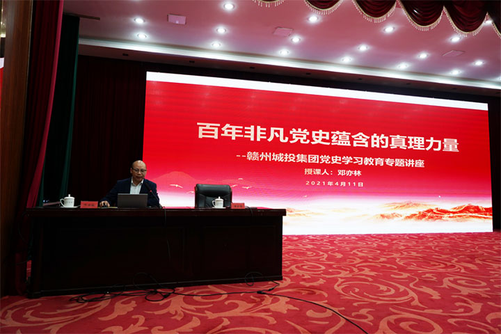 開學(xué)典禮后,贛州城投大學(xué)(黨校)第二學(xué)期第一課黨史學(xué)習(xí)教育專題講座開課。本次邀請了江西理工大學(xué)應(yīng)用科學(xué)學(xué)院黨委書記、馬克思主義學(xué)院教授、碩士生導(dǎo)師鄧亦林以《百年黨史中蘊含的真理力量》的主題為全員作黨史學(xué)習(xí)教育專題講座。