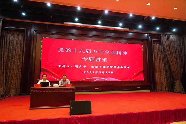 5月25日,贛州城投集團黨委舉辦黨的十九屆五中全會精神專題講座。市委講師團成員、瑞金干部學院常務副院長潘少平應邀授課,集團黨委副書記(主持工作)、總經理李國泉及集團全體高管、市管干部出席講座,集團黨委副書記黃家偉主持。