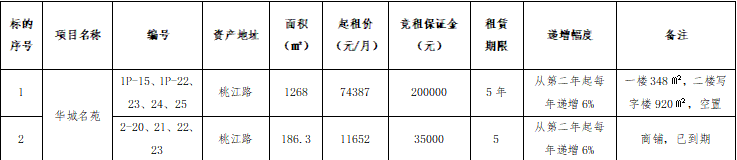 二、招租標(biāo)的、起租價(jià)及競租保證金