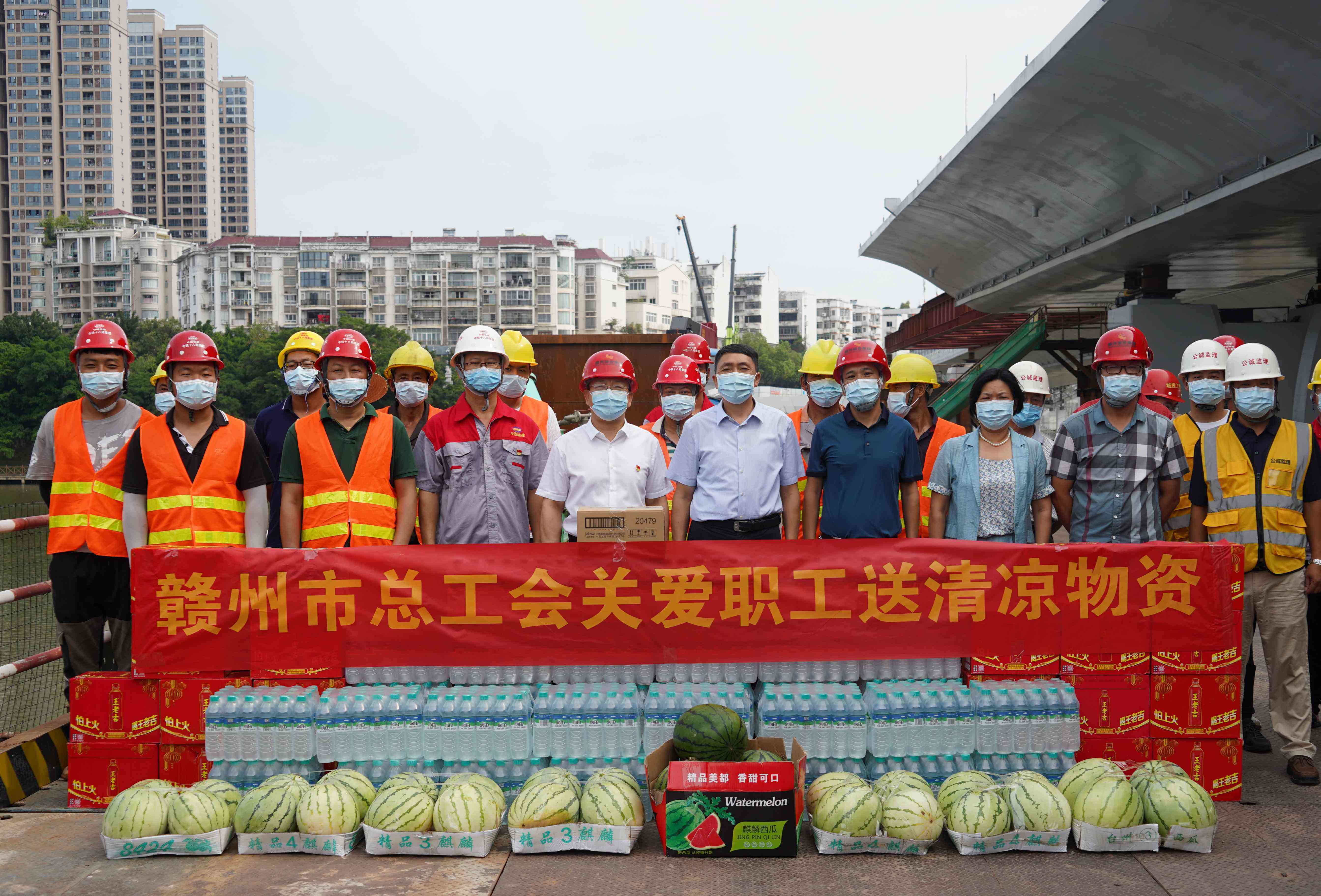 為鞏固解困脫困工作成果,提高職工生活品質(zhì),使高溫下作業(yè)的一線職工有更多的獲得感、幸福感、安全感,8月25日,贛州市總工會(huì)二級調(diào)研員賴定銘一行來到贛州城投集團(tuán)南河大橋拓寬改造(二期)工程項(xiàng)目工地開展“關(guān)愛職工 夏送清涼”走訪慰問活動(dòng),送上市總工會(huì)的關(guān)懷。贛州城投集團(tuán)黨委副書記黃家偉,工程管理公司相關(guān)負(fù)責(zé)人,集團(tuán)工會(huì)、文化宣傳部、項(xiàng)目部業(yè)主、監(jiān)理和施工單位相關(guān)人員等參加慰問。