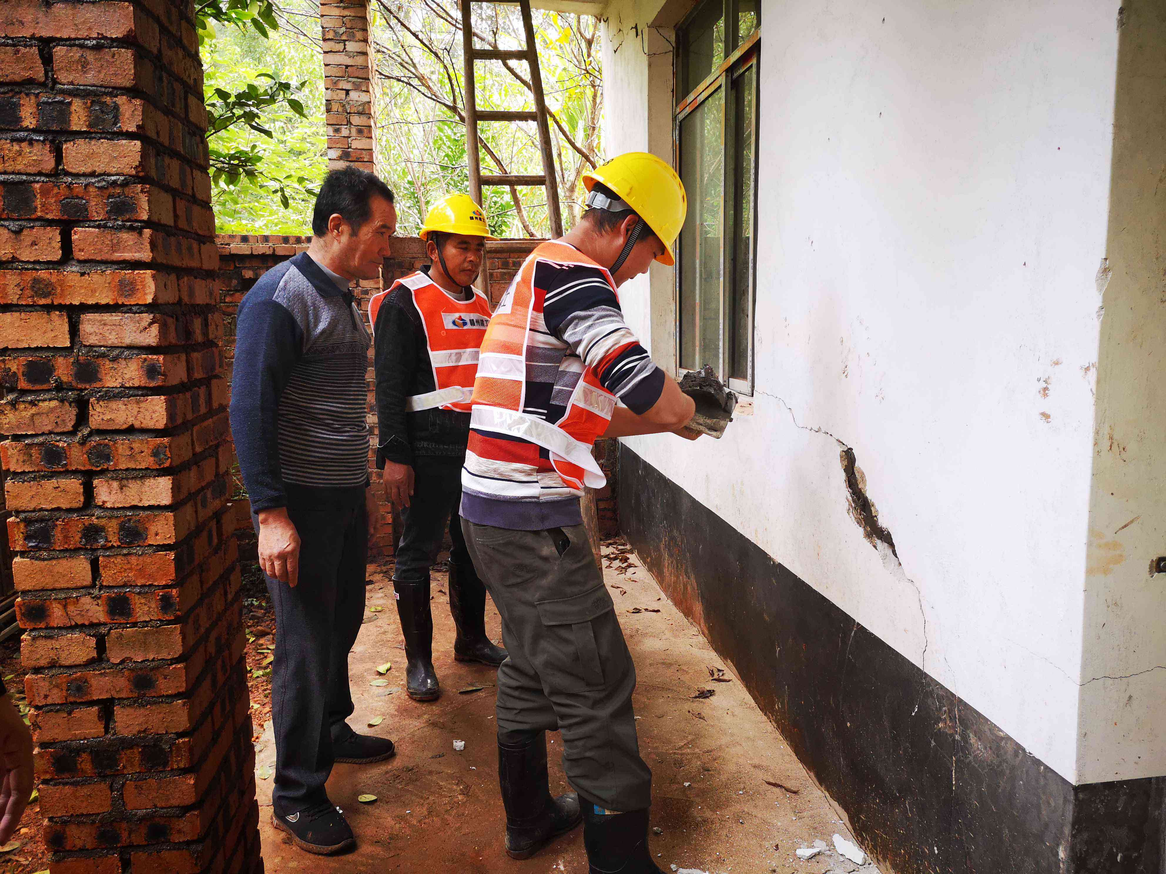 收到群眾訴求后,贛州建工集團(tuán)黨支部明確責(zé)任分工,由贛州建工集團(tuán)駐蓉江花園(四區(qū))項(xiàng)目部的工作人員前往實(shí)地了解情況。該村村民邱家飛年近七旬,所居住的房屋因年久失修,導(dǎo)致門(mén)廳墻面破損,房屋內(nèi)外均存在一定程度的裂縫。此外,村里另有一對(duì)姐弟居住的房屋由于結(jié)構(gòu)問(wèn)題也存在幾處裂縫。