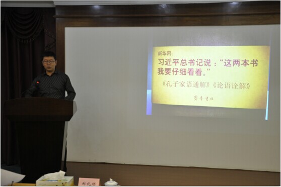 用閱讀補充心靈營養(yǎng),用心得交流高雅文化。大家下午好,很高興和大家一起走進《論語詮解》讀書分享會。