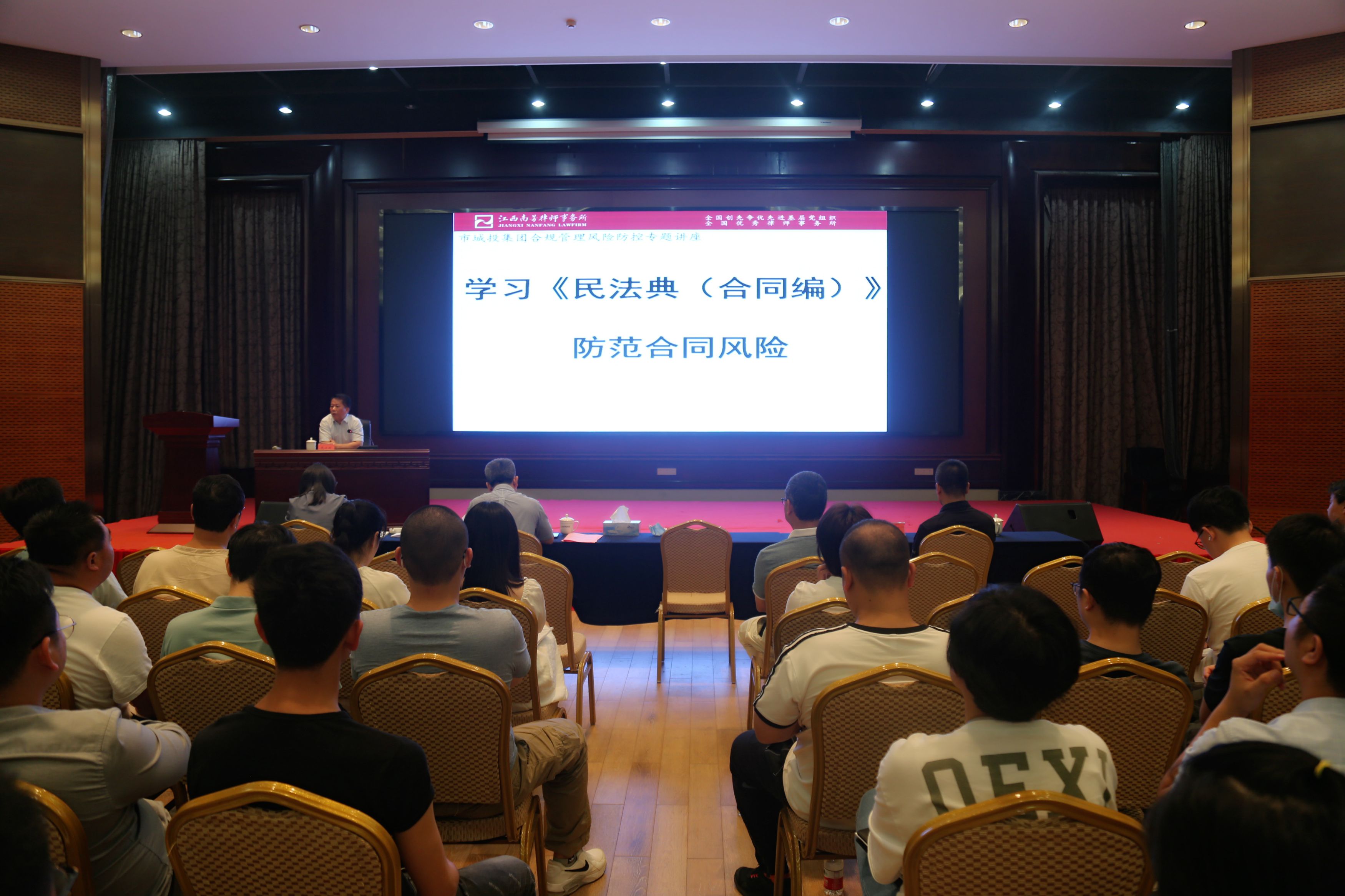 (上圖為江西南芳律師事務(wù)所范衛(wèi)權(quán)為贛州城投集團(tuán)全體員工解讀《民法典》合同編部分)
