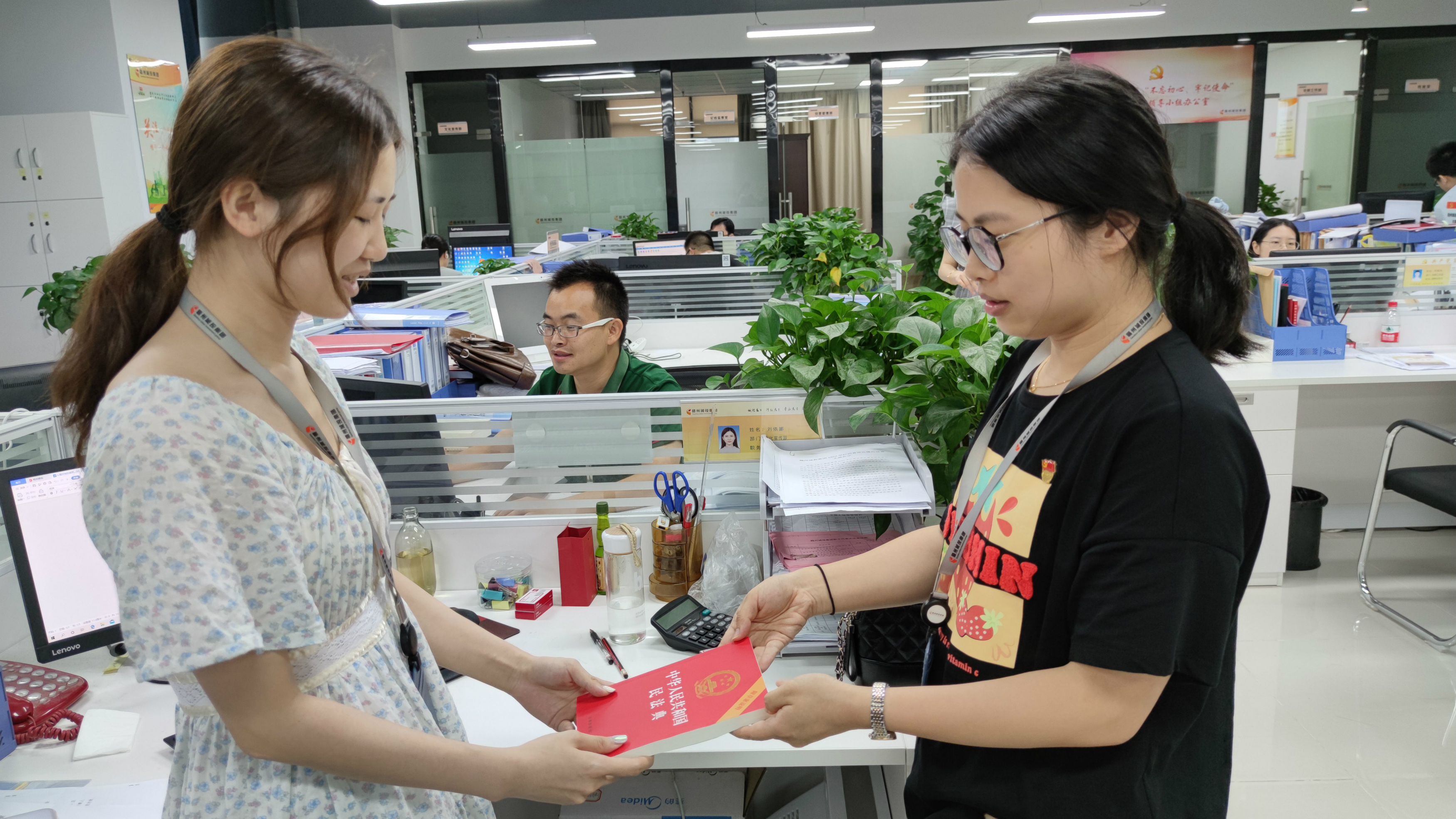 (上圖為贛州城投集團(tuán)給員工發(fā)放《民法典》)