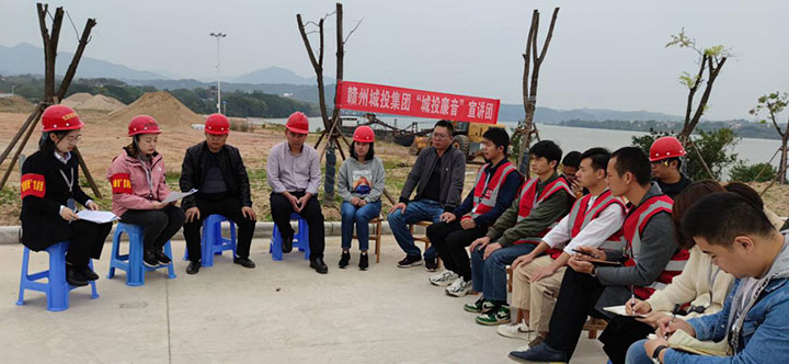 “城投廉音”宣講人在贛州中心城區(qū)建筑垃圾資源化利用及水西棄土場(chǎng)項(xiàng)目為職工宣講集團(tuán)相關(guān)制度