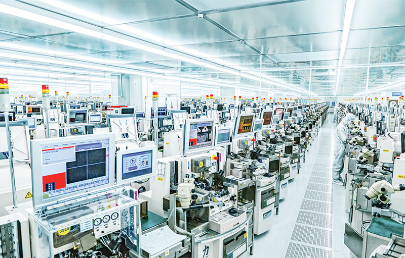 江蘇瞄準新領域新賽道,聚焦有發(fā)展優(yōu)勢的16個先進制造業(yè)集群和50條重點產業(yè)鏈,加快發(fā)展新質生產力。其中,半導體產業(yè)已形成涵蓋上游基礎材料設備、中游制造、下游應用的全鏈條產業(yè)集群,產業(yè)規(guī)模穩(wěn)居全國前列,是全國半導體產業(yè)的重要基地。圖為2024年9月25日,蘇宿工業(yè)園區(qū)內的江蘇長電科技(宿遷)有限公司,專業(yè)技術工人在智能控制生產線上操作。視覺江蘇網供圖 陳紅/攝