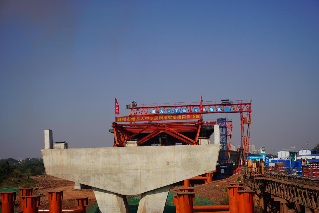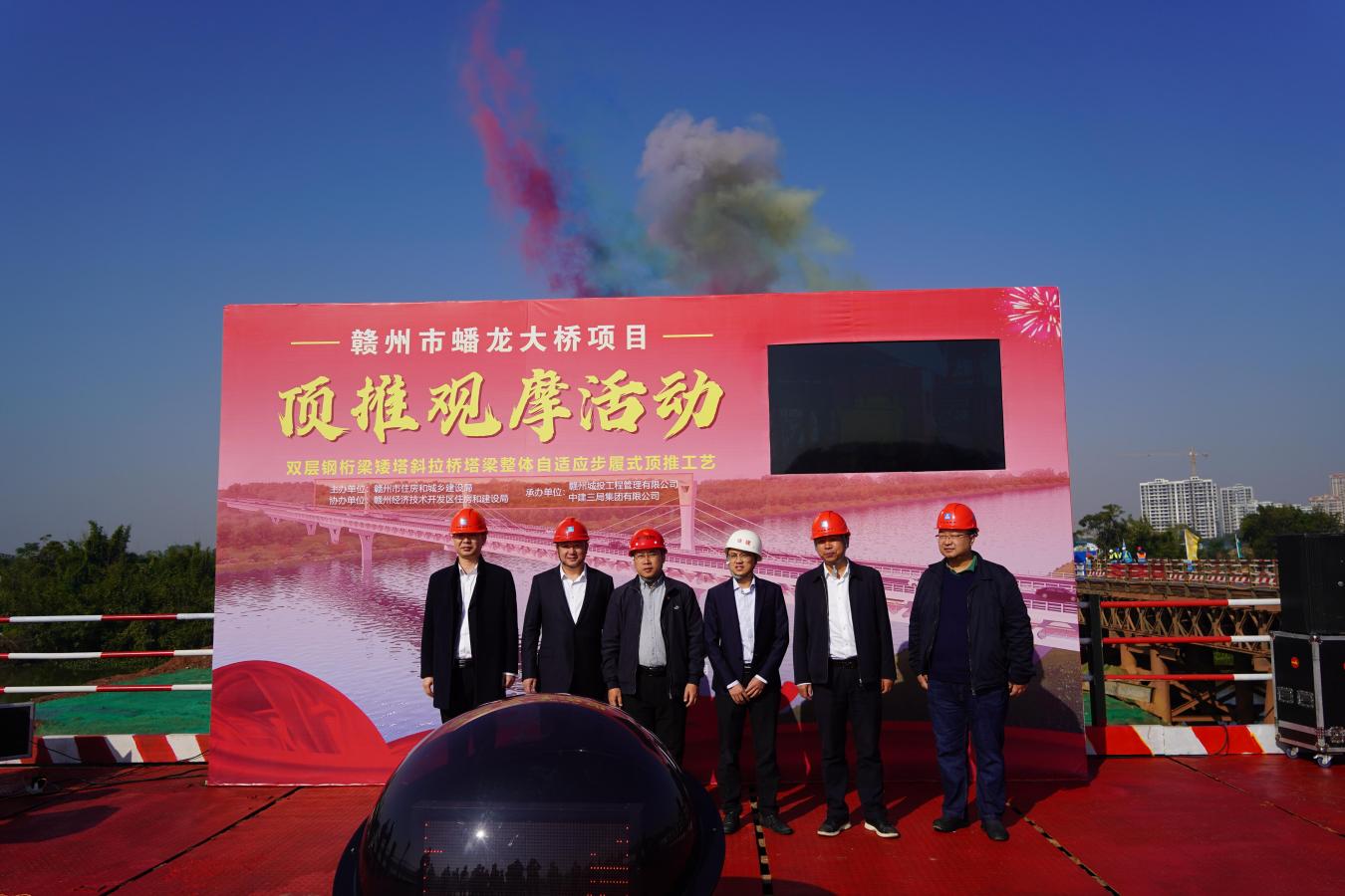 12月6日,贛州市蟠龍大橋項目主橋鋼結(jié)構(gòu)首次頂推啟動,為主橋的順利推進打下堅實基礎(chǔ),標志著該項目取得了全市重點項目建設(shè)百日攻堅活動任務(wù)目標的節(jié)點性勝利。贛州經(jīng)濟技術(shù)開發(fā)區(qū)住房和建設(shè)局,贛州城投工程管理公司、中建三局總承包公司等參建各單位代表共計60余人參加頂推啟動活動。